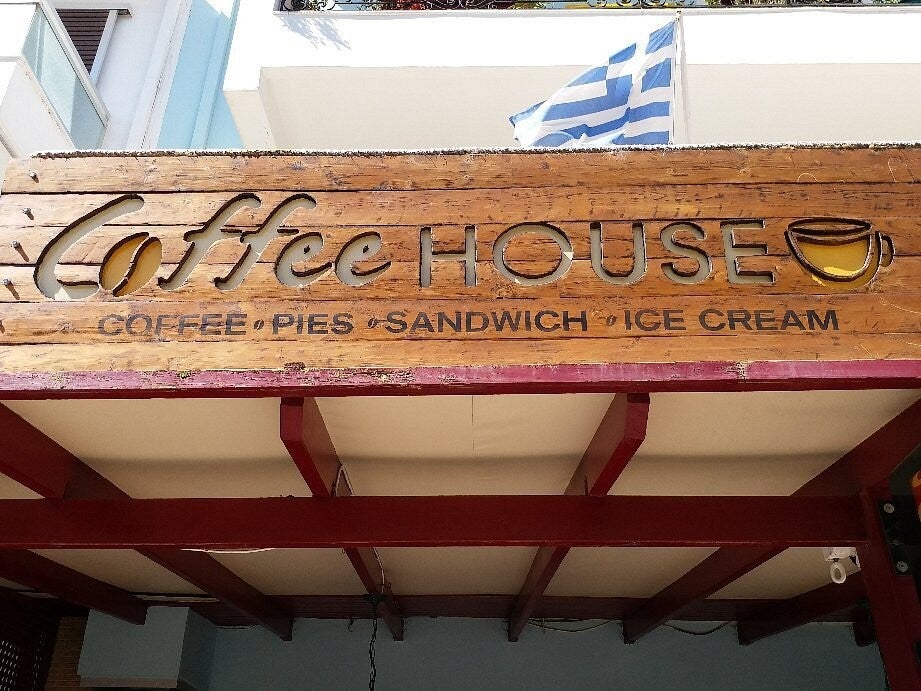 Coffee House is een levendige, kleurrijke koffiezaak in het centrum van Kos-stad, open vanaf vroeg in de ochtend (rond 07:00 uur) tot laat in de avond. Het is vooral een plek voor goede koffie. Ze hebben espresso van Hausbrandt, versgemalen Griekse bonen en klassieke opties zoals Nescafé of freddo-variaties . Daarbij verse pastries, croissants (chocolade of ham-kaas zijn favoriet) en echte baugetjes. Ontbijt is hier meer een lichte start: een sterke koffie met een vers gebakje of sandwich, geen uitgebreid buffet of omeletten, vers en snel klaar.