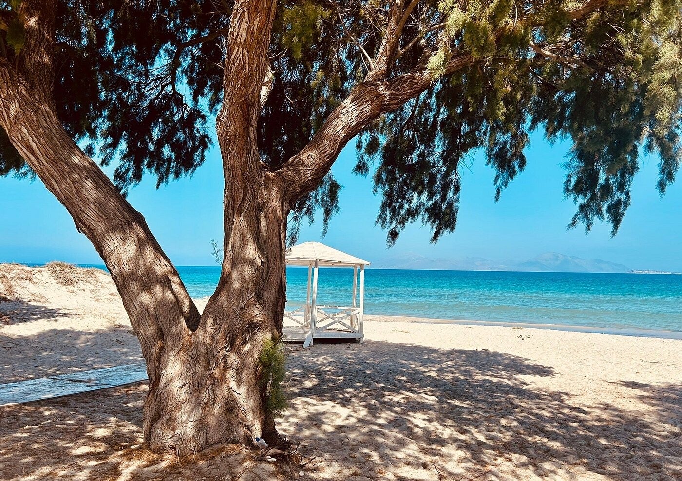De kustlijn lijkt eindeloos door de continue zandstrook en het kristalheldere turquoise water is warm, kalm en ondiep. Perfect voor families en kinderen die willen genieten van langdurig zwemmen zonder zich zorgen te maken over dieptes. Je vindt hier tal van ligbedden met parasols, gezellige beach bars en tavernes. Waar je vaak gratis ligbedden kunt krijgen bij een drankje of maaltijd.