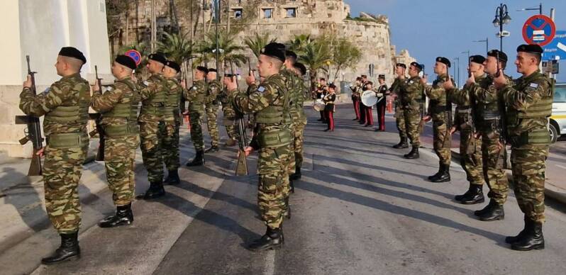 Wanneer de dag ten einde loopt, meestal rond zonsondergang (tussen 18:00 en 20:00 uur, afhankelijk van het seizoen), vindt de omgekeerde ceremonie plaats. De soldaten marcheren opnieuw naar het Palazzo del Governo. Opnieuw klinkt het volkslied, er wordt gesalueerd en de vlag wordt zorgvuldig en met respect neergehaald. Geen haast, geen slordigheid – alles gebeurt met dezelfde precisie als ’s ochtends.Dit ritueel van hijsen bij dageraad en afhalen bij valavond is kenmerkend voor Griekse militaire vlagceremonies. Op Kos, gelegen op slechts enkele kilometers van de Turkse kust, wordt deze traditie met extra toewijding in ere gehouden
